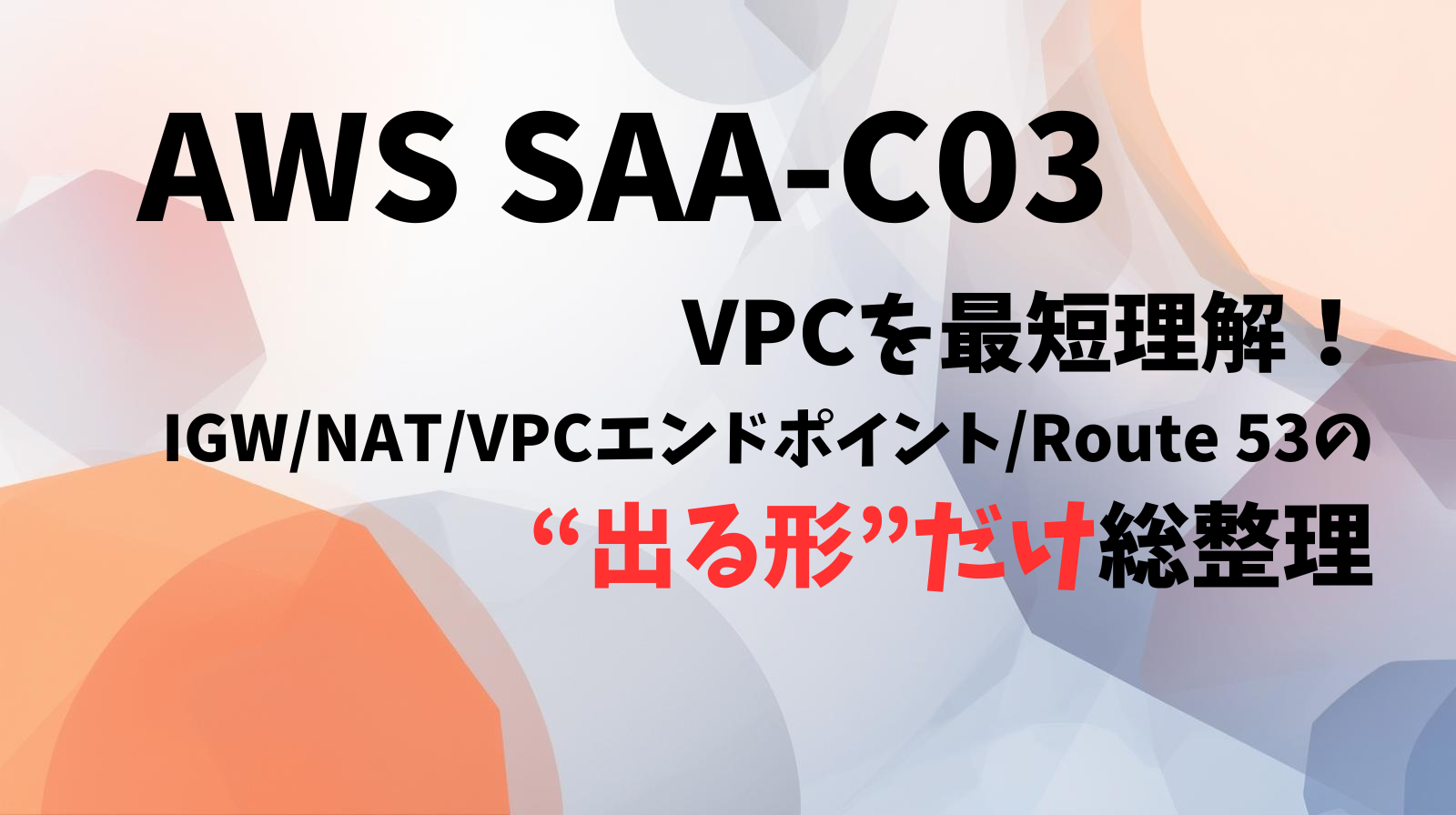 この後のブロックで、SAA-C03頻出の IGW/NAT/Endpoint/Route 53 を「出る形だけ」に絞って整理します。