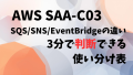 この記事では、SAA-C03でそのまま使えるように、「要件キーワード→最有力サービス」へ即変換できる決定表と、よく出るシナリオ別の選び方をまとめます。