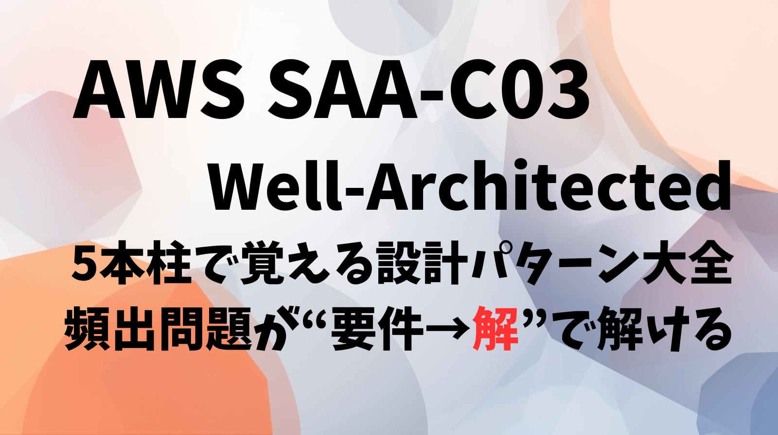 SAA-C03は、サービスを覚える試験ではなく「要件から正しい設計判断をする試験」です。その判断基準として最も強力なのが、AWS Well-Architected Frameworkの5本柱です。本記事では、5本柱をそのまま覚えるのではなく、試験頻出の“設計パターン(型)”に変換して解ける形に整理しました。